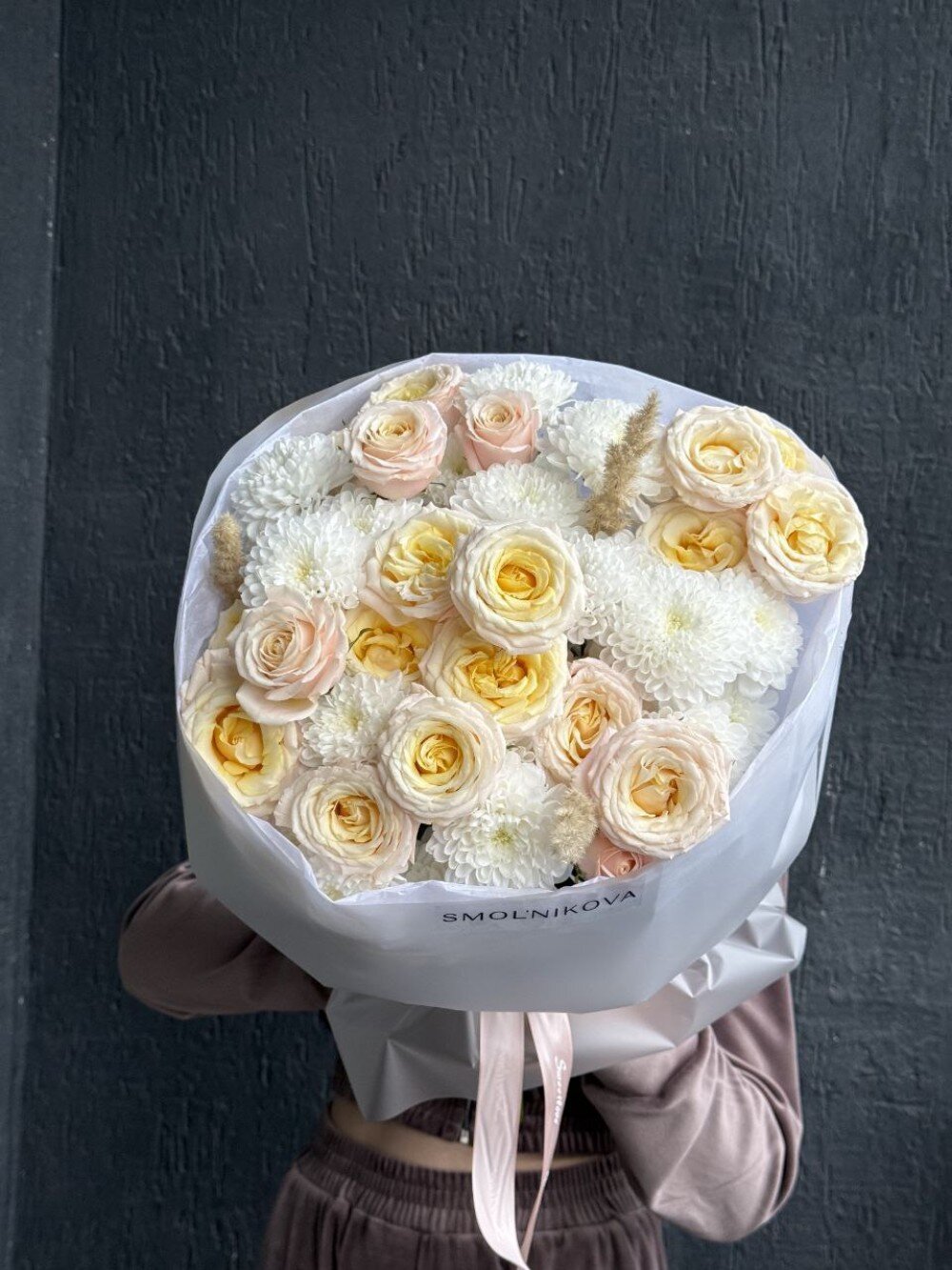 Букет из хризантем и куствых роз